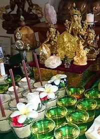 Immer am 8. Tag des tibetischen Monats von 17 bis 19 Uhr rezitieren wir gemeinsam die „Darbringung der vier Mandalas an Chittamani-Tara”.
