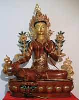Tara (tib. Drölma), die „Befreierin“, steht für die Auflösung von Hindernissen auf dem Pfad zur Buddhaschaft. Sie befreit uns von den verschiedenen Arten von Leiden und Ängsten in Samsara und dient uns als eine nie versiegende Quelle freudvoller Inspiration auf dem Pfad des Dharma.